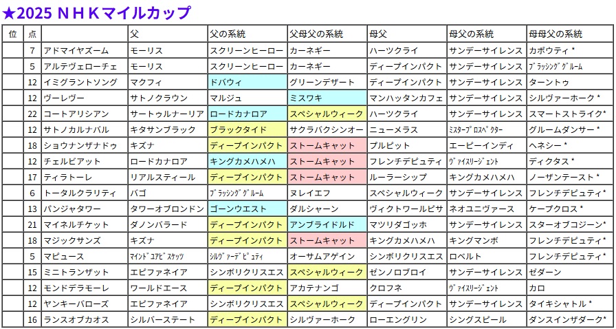 NHKマイルカップ・過去5年の血統
