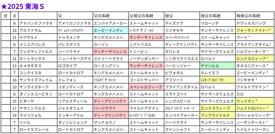 東海S・過去5年の血統