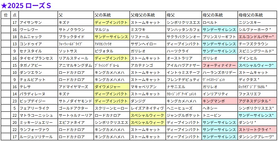 過去の傾向から血統を点数化、今年の出走馬にランク付けして予想しています。