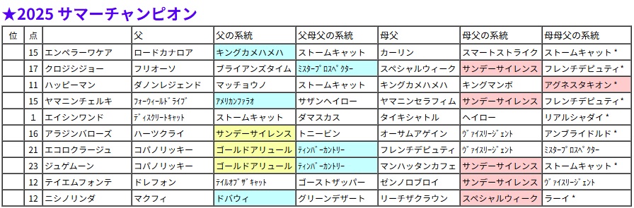 サマーチャンピオン・過去5年の血統