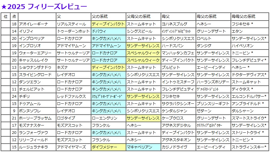 フィリーズレビュー・過去5年の血統