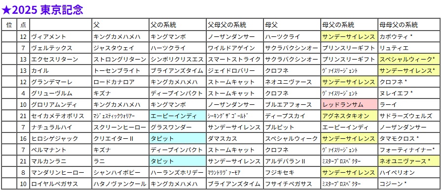 東京記念・過去5年の血統