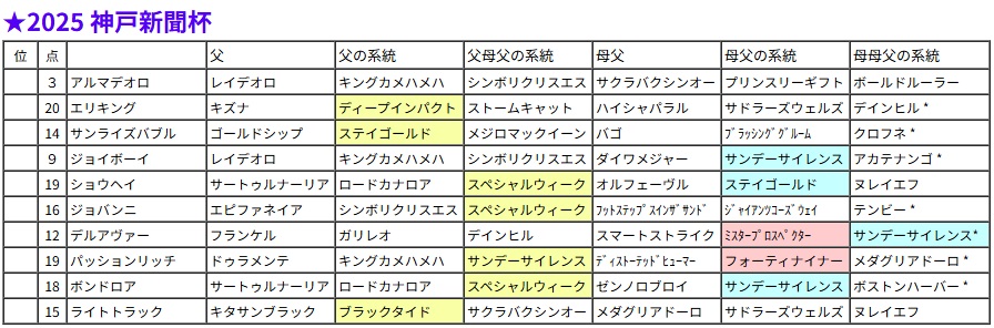 過去の傾向から血統を点数化、今年の出走馬にランク付けして予想しています。