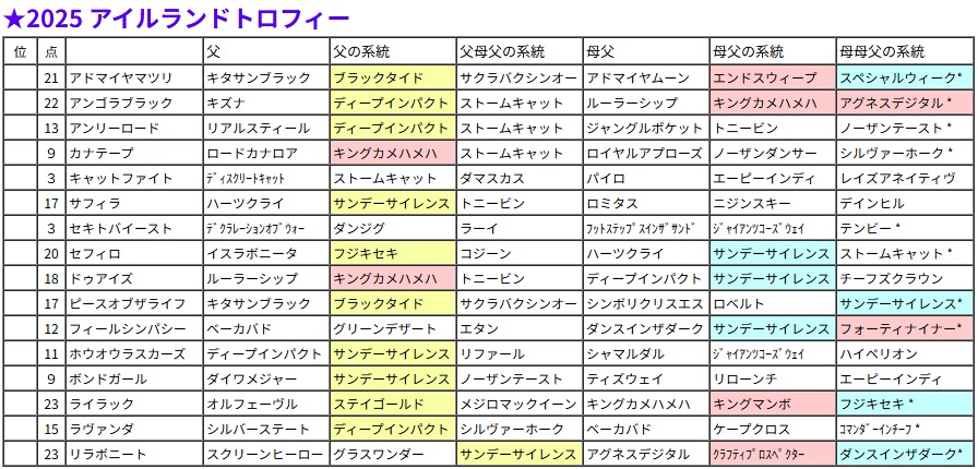 アイルランドトロフィー・過去5年の血統