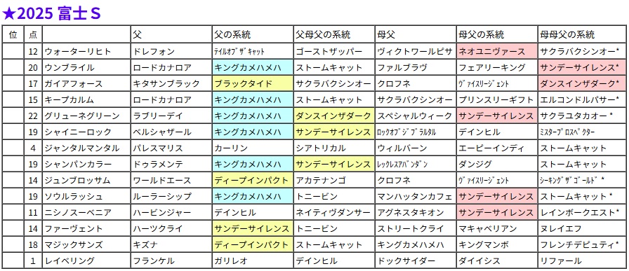 富士S・過去5年の血統