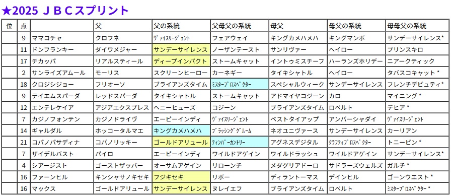 JBCスプリント・過去5年の血統