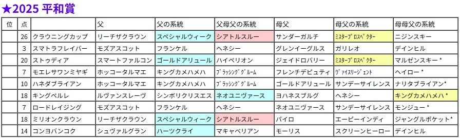 平和賞・過去5年の血統