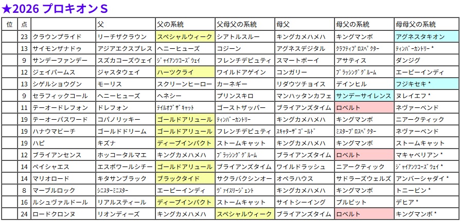 プロキオンS・過去5年の血統